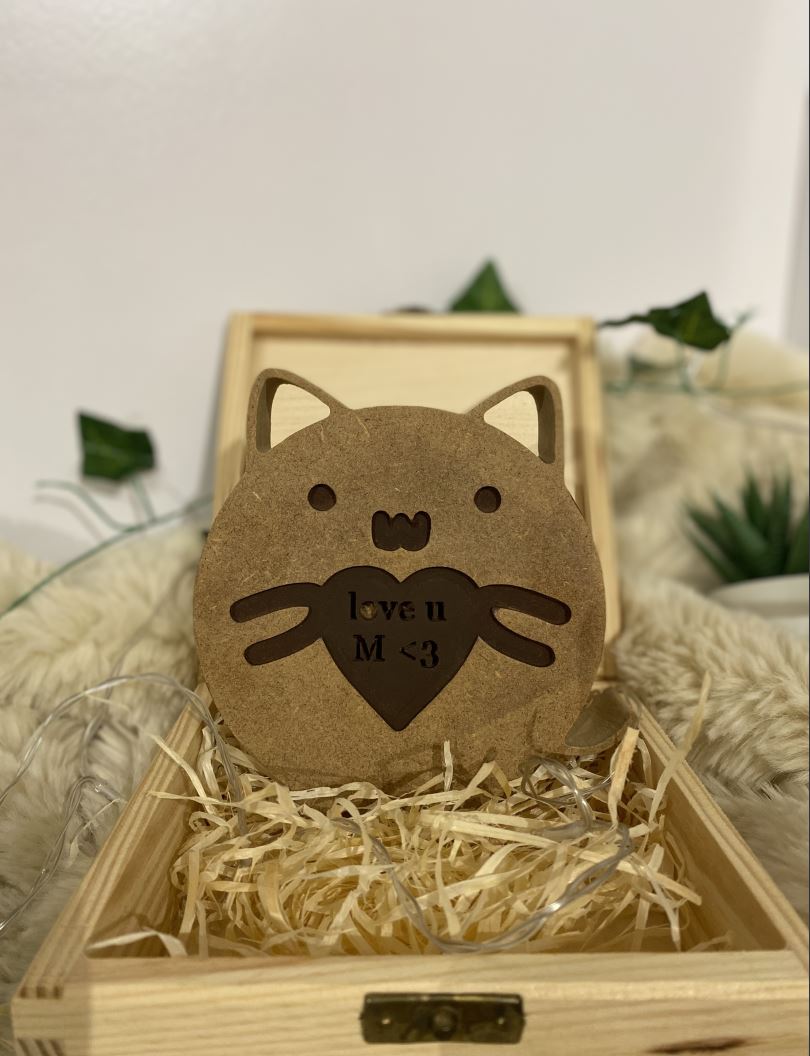 Kształt kotka wycięty z MDF. Naturalna dekoracja i idealny prezent, dla każdego miłośnika zwierząt, a zwłaszcza tych domowych pupili.