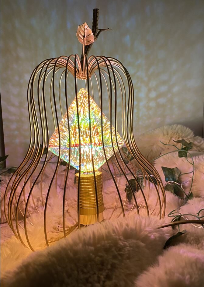 Materiał wykonania: Drewno, tworzywo sztuczne , drut ozdobny kolor złoty.